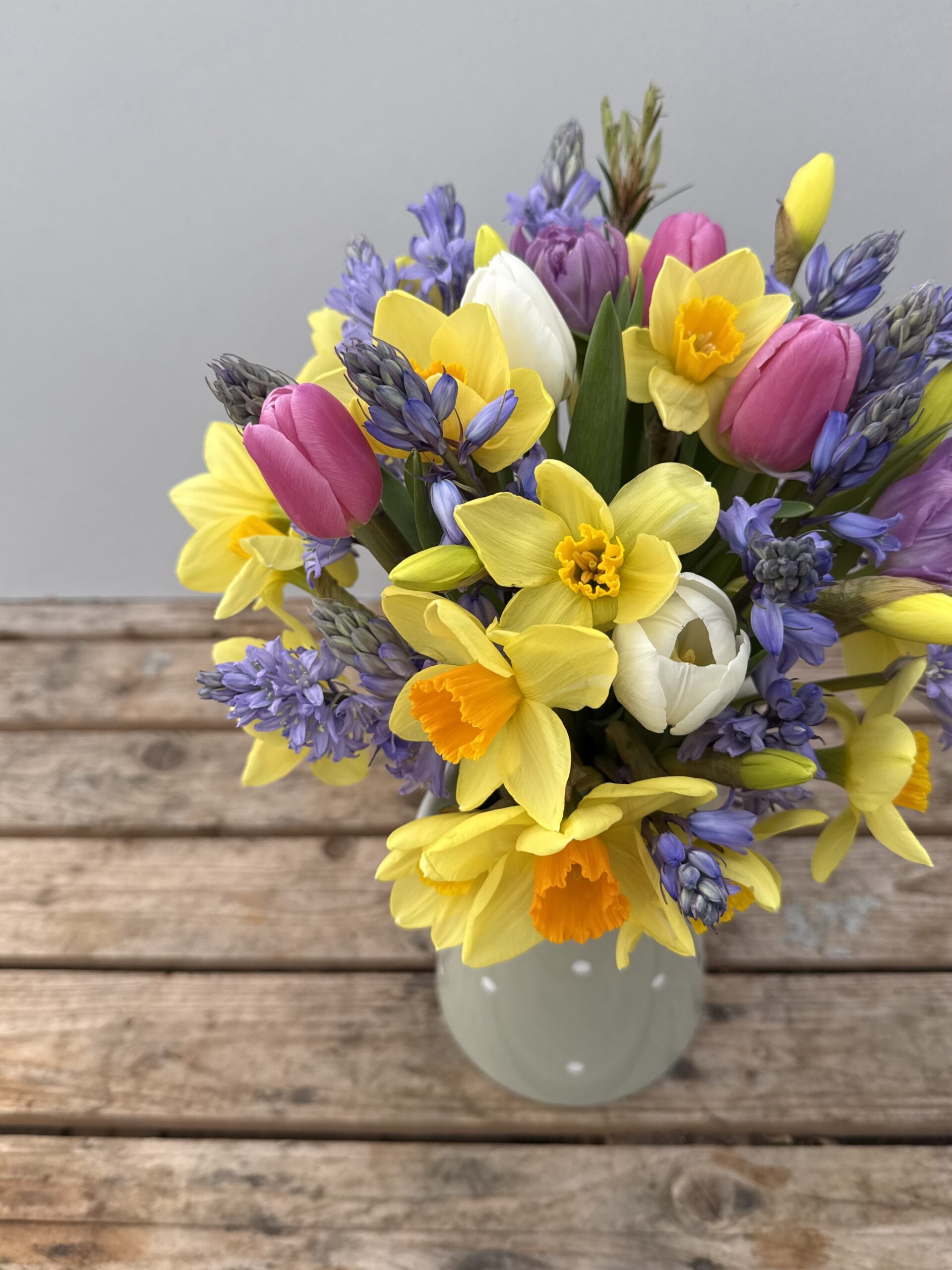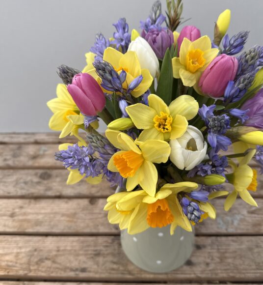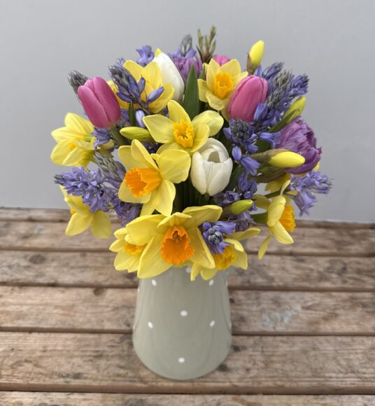 For our lovely Bouquet of the Week this week we are very pleased to be able to offer a lovely bunch of Cornish Daffodils, Scillas and Tulips.
