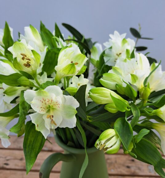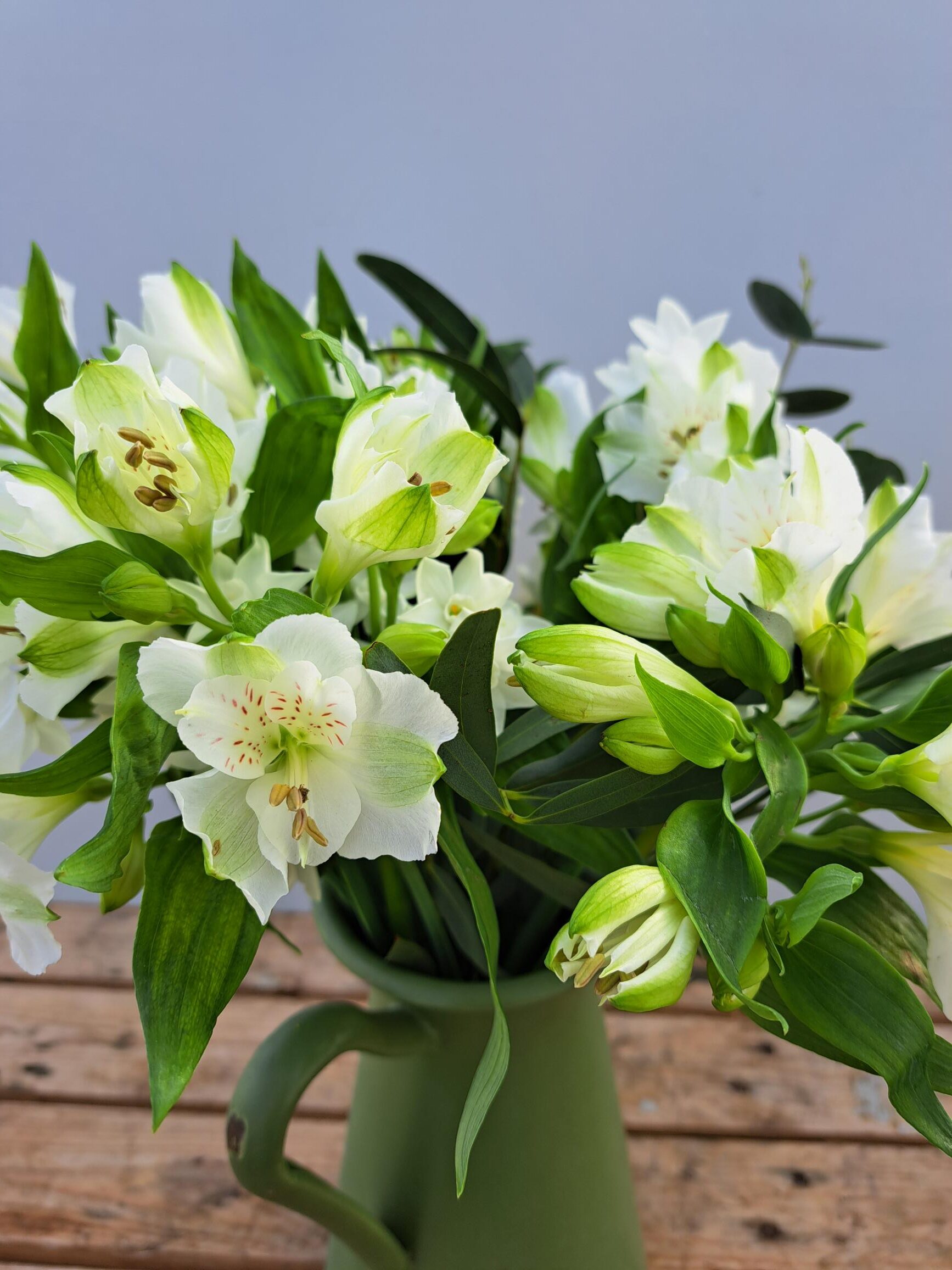 The white Cornish Alstroemeria is fantastic quality, grown by Lanoyce Nurseries in Cornwall.