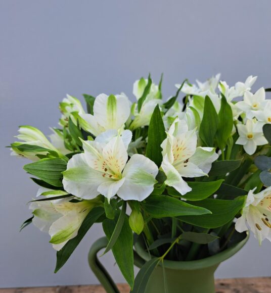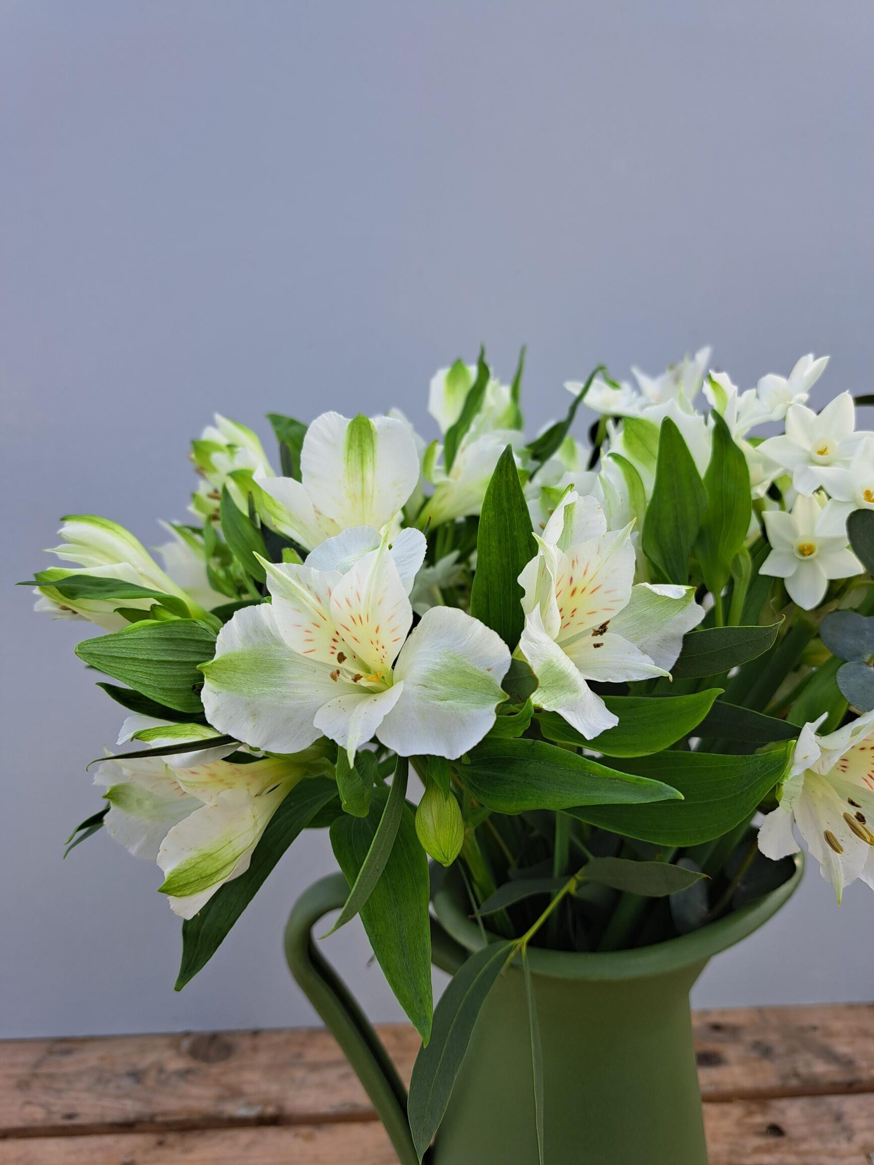This weeks Bouquet of the Week is a beautiful bunch of White Alstroemeria and Narcissus.