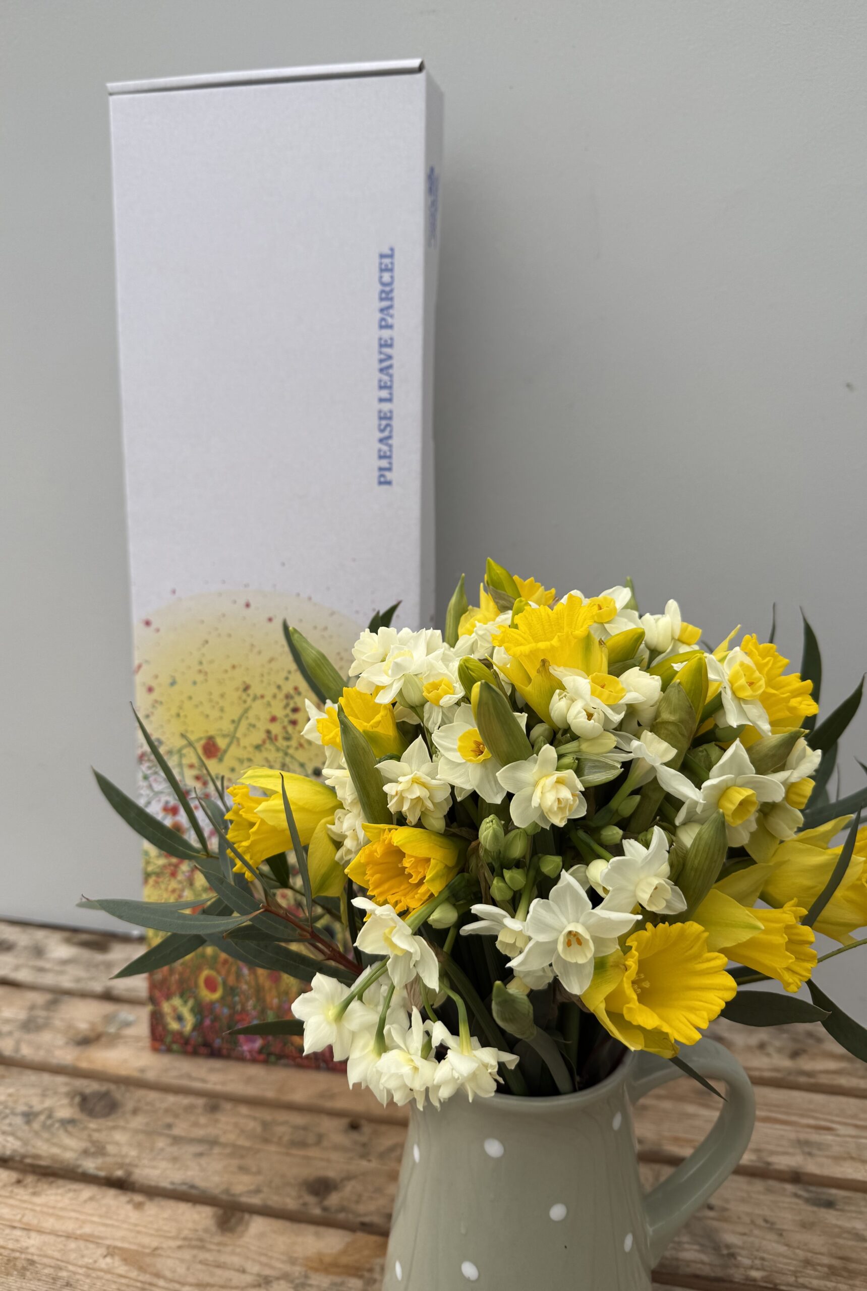 This bunch of Spring cheer will arrive in a letterbox sized box (unless you add a candle and then it will need to be sent in our larger box!) £21 including delivery.