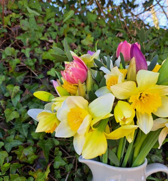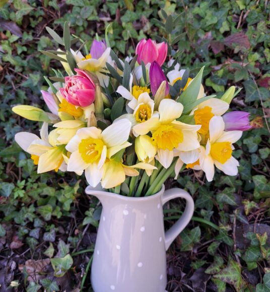 For our lovely Bouquet of the Week for the Easter Period (30th March – 10th April) we are very pleased to be able to offer a lovely bunch of Cornish Daffodils & Tulips.