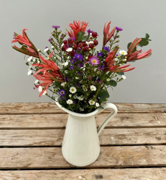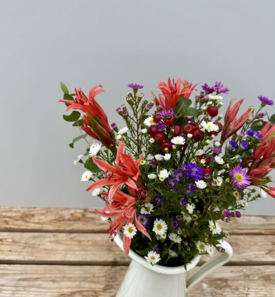 This weeks Bouquet of the Week is a beautiful mixture of Cornish Nerines, Michaelmas Daisies, Rosehips and lovely fresh foliage.