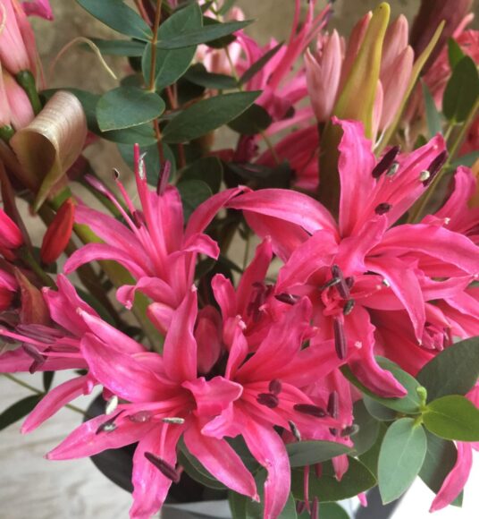 The Cornish Nerines are locally grown and may be a vivid pink or coral in colour.