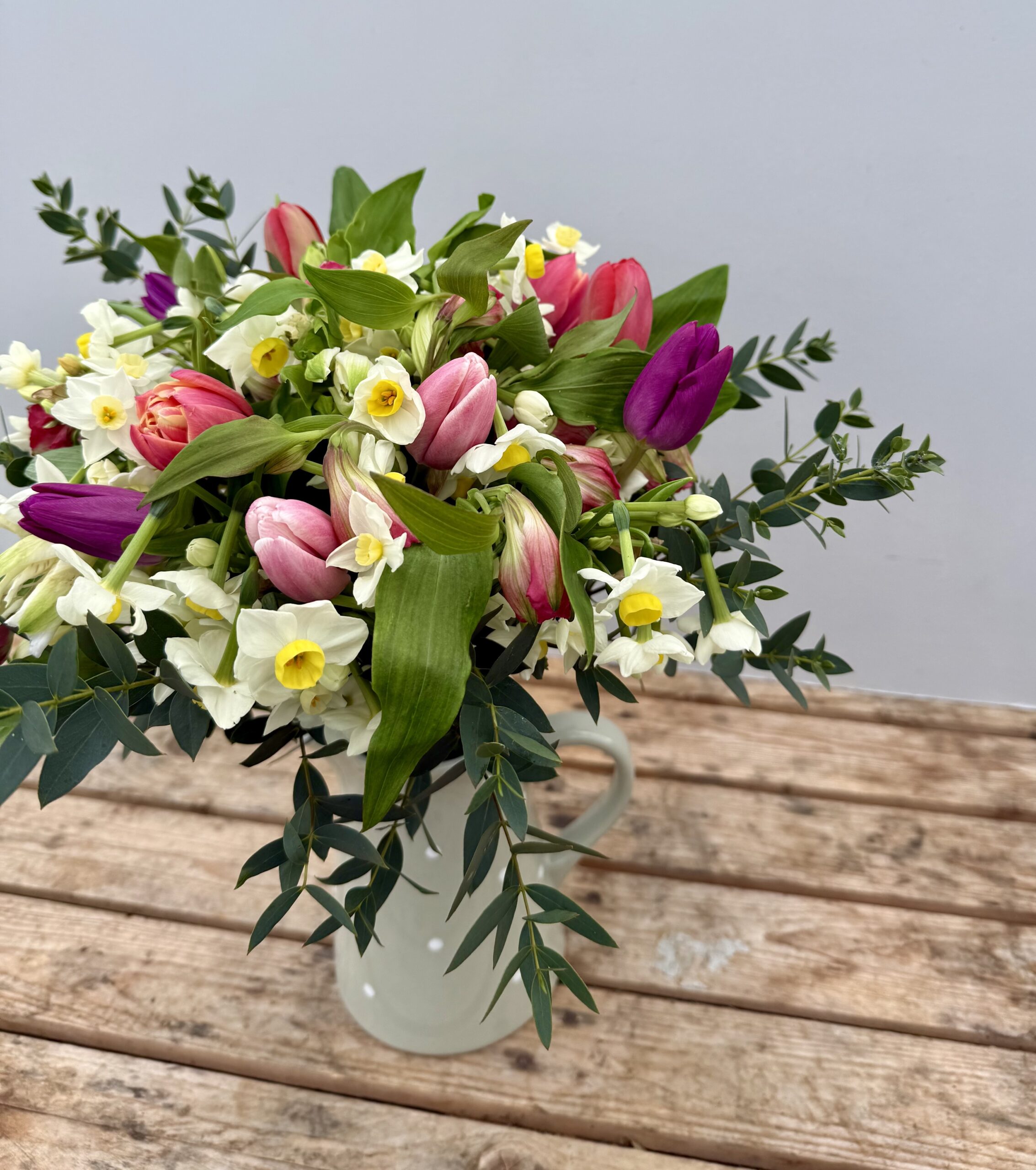 Our Bouquet of the week for the 9th – 13th March will be this gorgeous mix of highly scented Narcissi, Alstroemeria and Tulips in shades of white, cream and pink. Also available to order now.