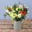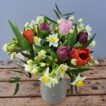 This gorgeous bunch will have 30 stems of white/cream highly Scented Narcissi, 7 stems of mixed colour Tulips (in Red, Purple and Pink) and some lovely fresh foliage.