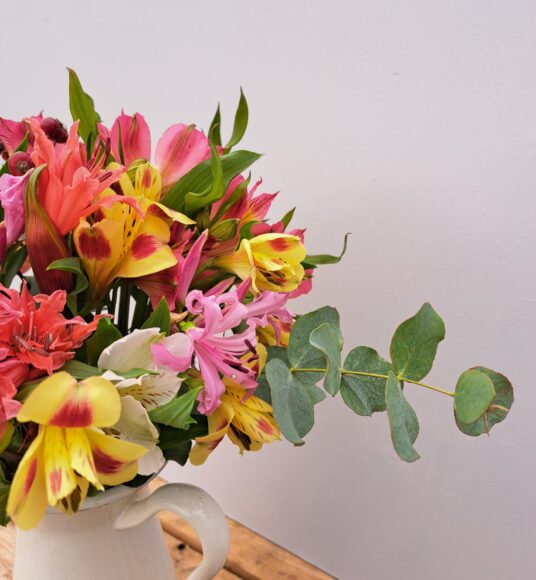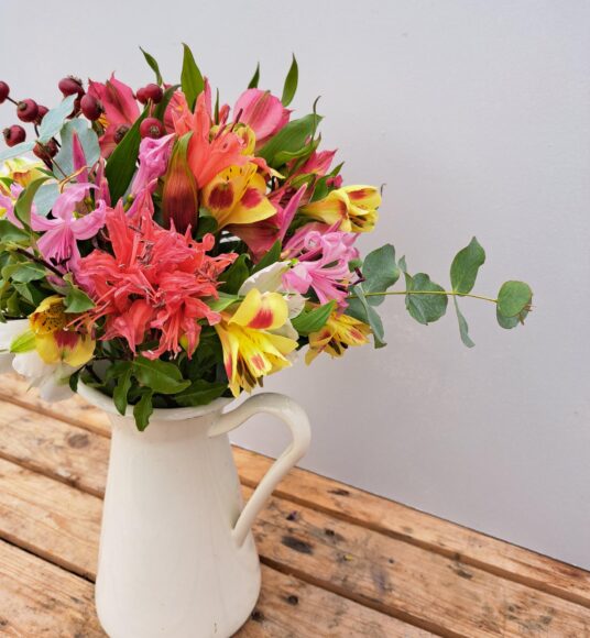 The Alstroemeria will be in mixed colours and comes from Lanoyce Nurseries near Saltash. Lanoyce is owned by the Rickard family and we are delighted to have fresh Alstroemeria from them every week of the year!