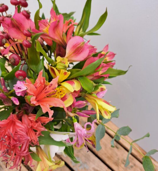 The bouquet of the week for Monday 4th to Friday 7th November is a beautiful bunch of Cornish Alstroemeria, Cornish Nerines and Rosehips with fresh Cornish foliage.