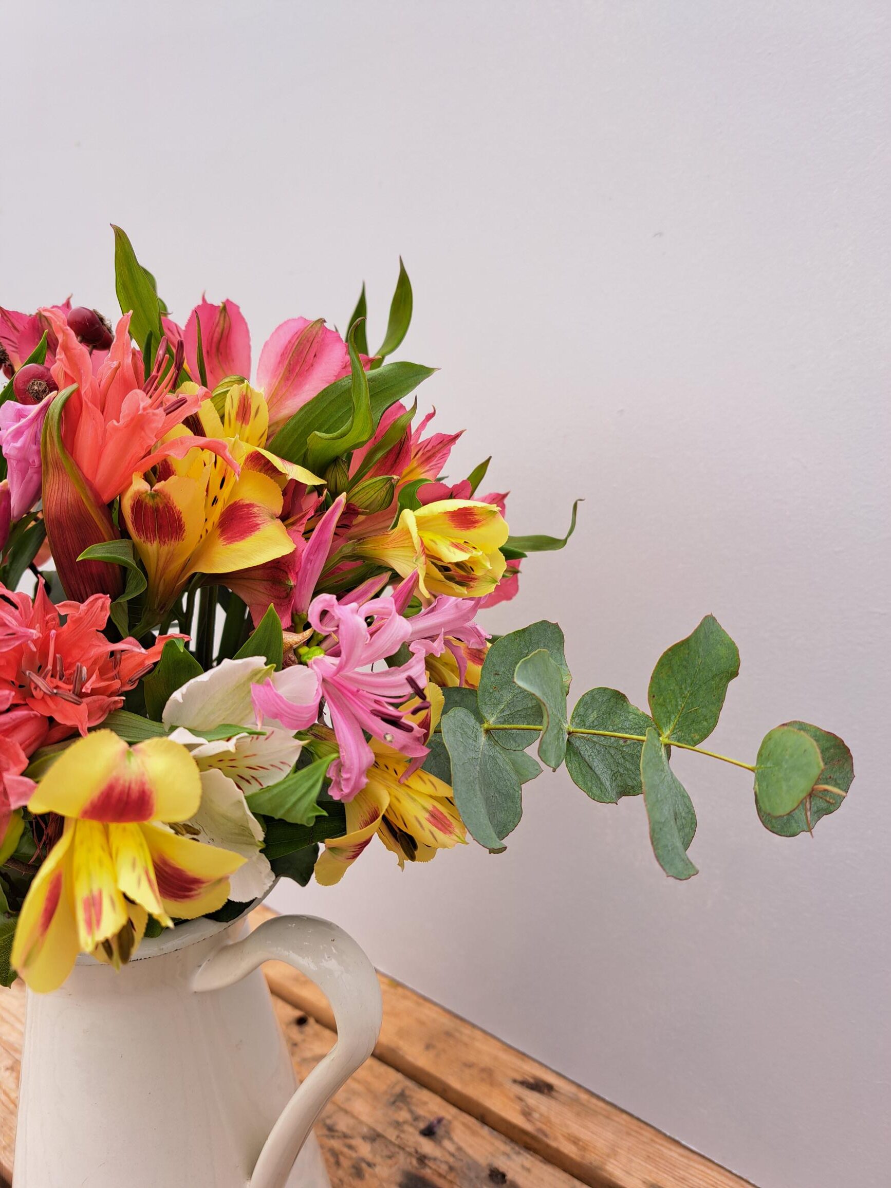 The Alstroemeria will be in mixed colours and comes from Lanoyce Nurseries near Saltash. Lanoyce is owned by the Rickard family and we are delighted to have fresh Alstroemeria from them every week of the year!